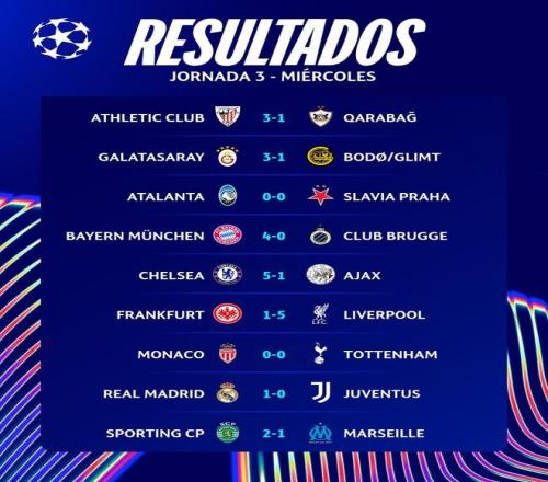 其中巴黎和拜仁將在下一輪比賽迎來正面對決,另一支全勝球隊(duì)皇家馬德里將客場挑戰(zhàn)利物浦。