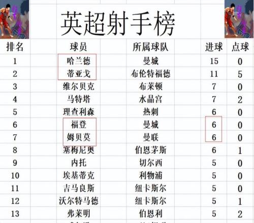 射手榜方面,哈蘭德15球位列榜首,蒂亞戈11球緊隨其后。維爾貝克,馬特塔7球并列第3,距離榜首就有些遠了。姆貝莫今天錯失單刀后打空門進一球,追上福登,理查利森和塞梅尼奧,6球并列第5。